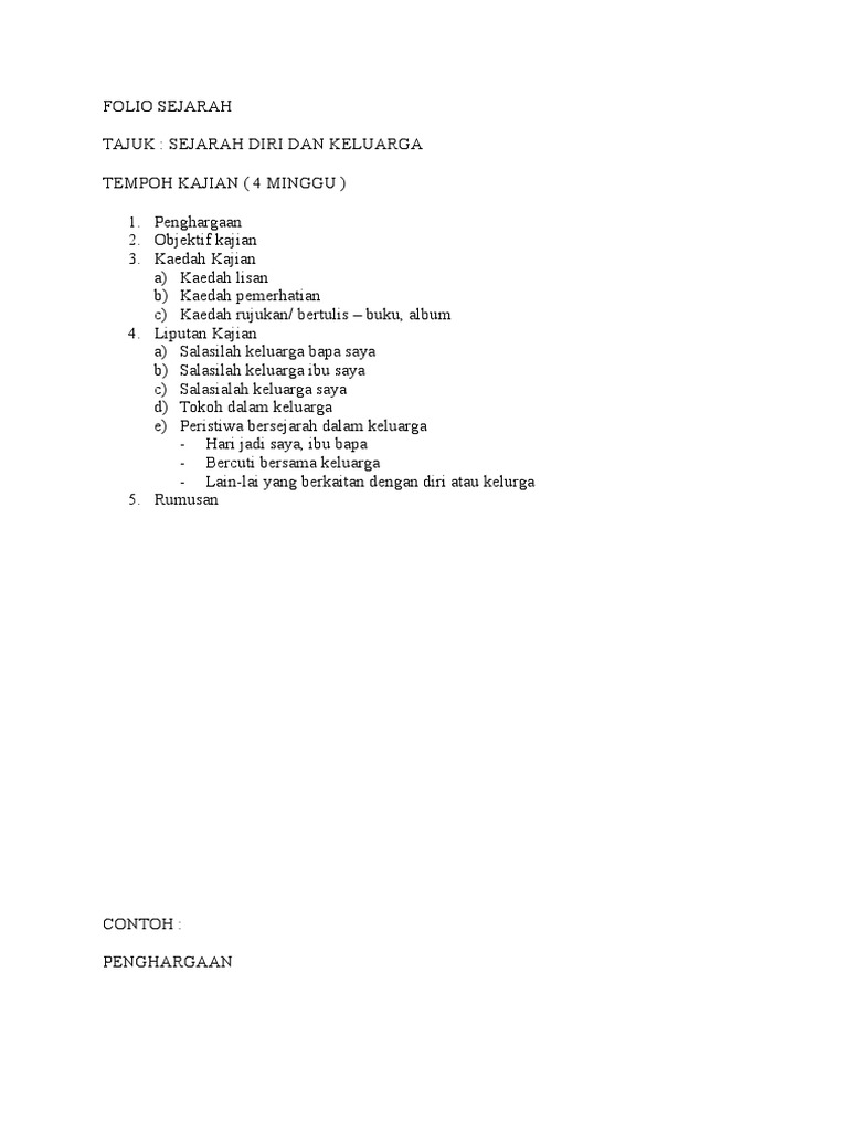Contoh Folio Sejarah Tahun 4 Keluarga Saya Otosection